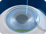 In der 1. Phase des Eingriffes wird vom Arzt eine dünne Lamelle (Flap) auf der Vorderseite der Hornhaut zentriert und markiert. In diesem Moment verdunkelt sich Ihre Sehfähigkeit auf kurze Zeit wegen des verstärkten Druckes auf das Auge. Danach wird die Lamelle vorsichtig zurückgefaltet, um die tiefere Hornhautschicht freizulegen. Ihre Sehfähigkeit wird sich wiederherstellen, allerdings wird sie getrübt sein.